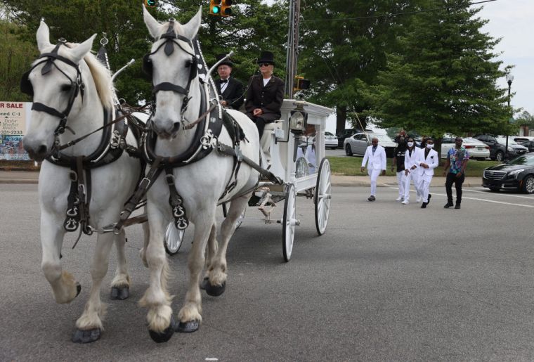 Pallbearers prepare to carry the casket of Andrew Brown Jr. to a horse-drawn carriage before his funeral service at the Fountain of Life Church on May 3 in Elizabeth City, North Carolina.